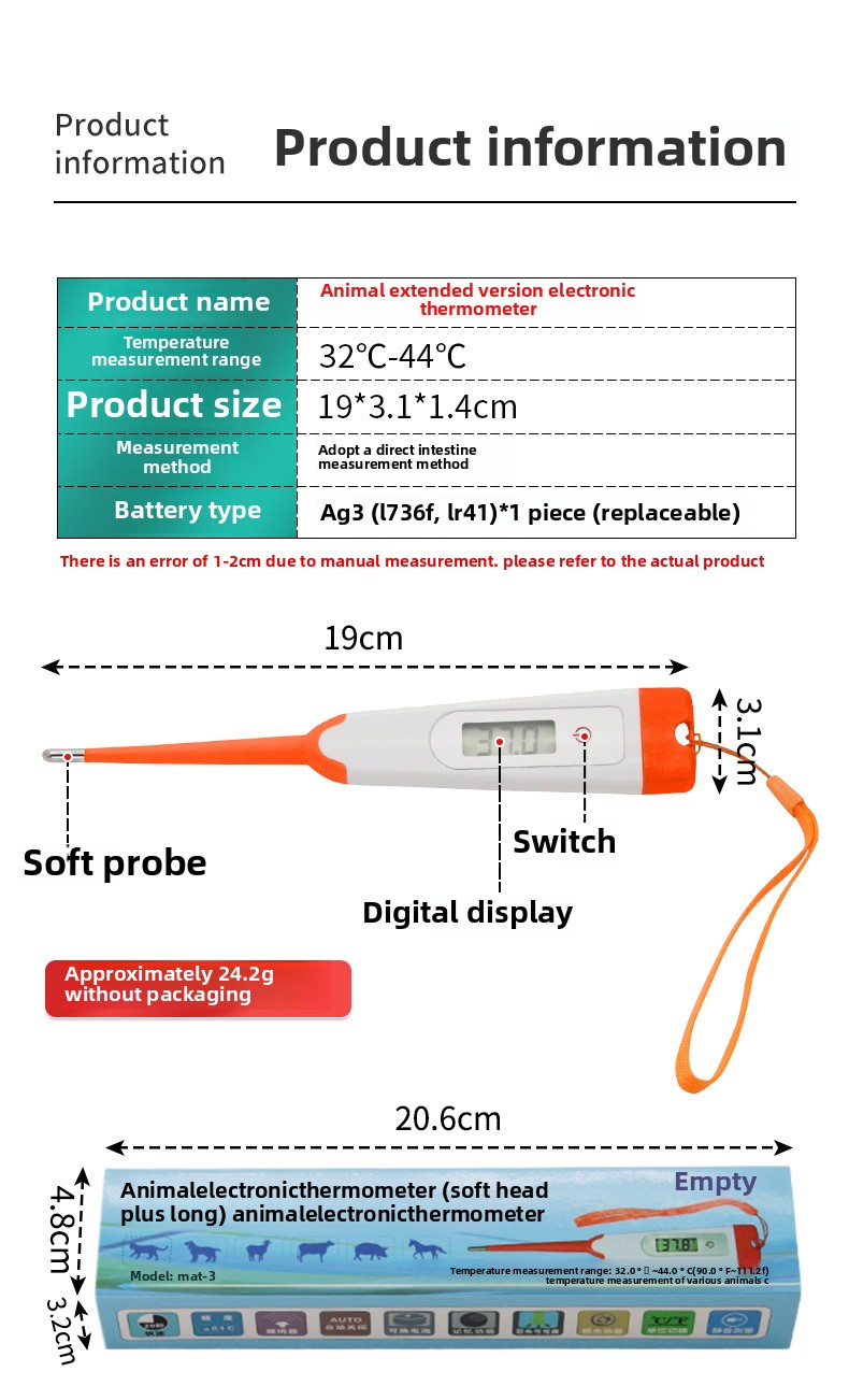 MAT-3C Electronic Veterinary Rectal Thermometer for Pig Cow Sheep Household Pets Measuring Instrument
